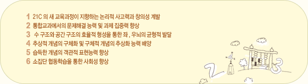 을 통하여 학생 스스로 수학적, 과학적 심미적 원리를 탐구하고 발견하는 과정을 체험하도록 하며, 이로부터 창의적 사고력과