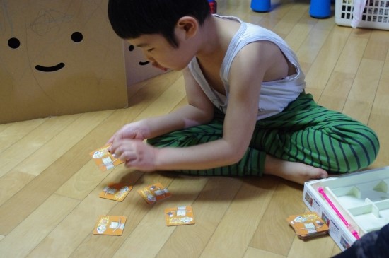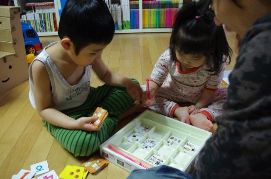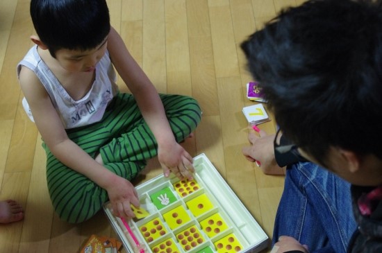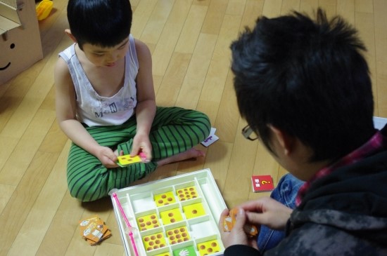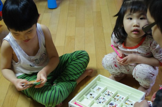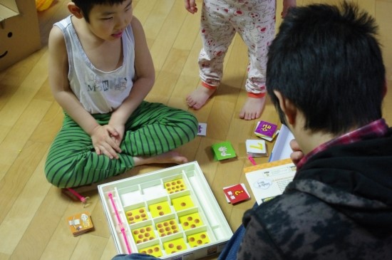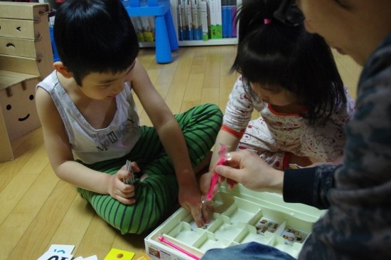 그래서 이번에는 미션을 하나 제안했어요. 같은 색깔의 면이 서로 붙지 않게 만들어 보면 어떨까하고 말이예요. 그랬더니 할 수 있을거 같다며 만들어 보더라구요.