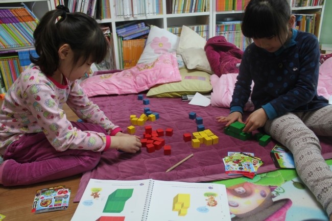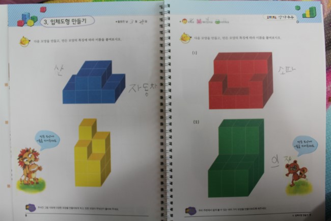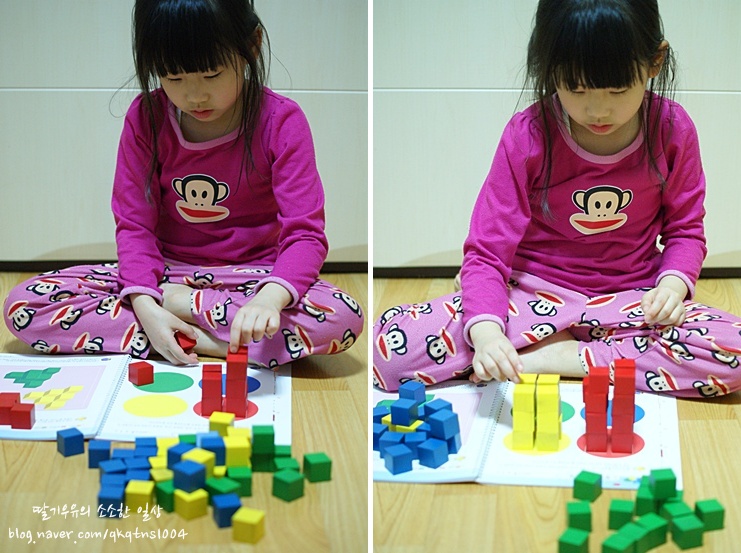 매일 조금씩 꾸준하게 활용하고 있는데, 학교, 학원 다녀와서 숙제부터 해놓고 저녁 준비하는 사이 조용해서 보니까 조이매스 쌓기나무 꺼내서 워트북이랑 활용하고 있더라구요.ㅋ