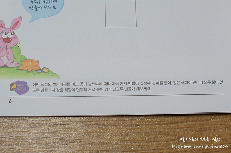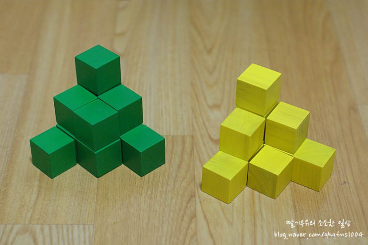 쌓기나무 가지고 놀고나서 박스에 넣어도 되지만 이렇게 주머니에 넣어서 보관하니 더 편하더라구요. 주머니에 넣어서 장거리 여행갈 때 가지고 가도 좋을 거 같아요. 쌓기나무 수준2는 7세 이상이 활용하기 적당하다고 하네요. 8살인 딸기양이 활용하기에 딱 적당한 거 같아요. 물론 아이들마다 다르겠지만 보통 여자 아이들이 공간지각력이 좀 약하다고 해서 쌓기나무를 통해 입체도형과 친해지면서 그런 부분들이 보완이 될 거 같아요.^^ 뿐만 아니라 쌓기나무를 사용해서 덧셈과 빨셈, 입체도형 만들기와 입체도형 관찰하기, 규칙 찾기와 규칙 만들기, 세기와 측정, 그래프 만들기 등 다양한 활동을 통해 수학적 창의력과 문제해결 능력을 키울 수 있다고 하니까 꾸준하게 다양하게 활용해야 되겠어요.^^ |