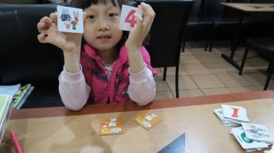 그림을 보고 모양을 그대로 만들어 봤어요. 모양을 관찰한 다음에 만들기 시작하는데, 생각보다 쉽게 잘 만들더라구요. 그리고 모양을 만들기 전에 그림만 보고 어떤 색깔의 쌓기나무가 더 많은지 예측해 보았는데, 딸기양은 초록색이 더 많을 거 같다고 하더라구요. 그리고 직접 그림의 모양대로 만든 다음에 쌓기나무의 개수를 세어서 각각 적어보고, 어떤 색깔의 쌓기나무가 더 많은지 확인해 봤는데, 노란색보다 초록색 쌓기나무가 1개 더 많더라구요.