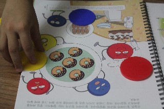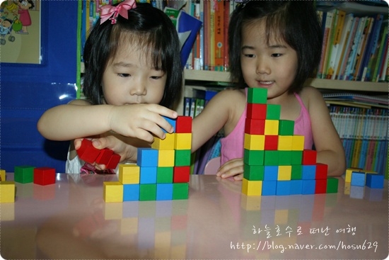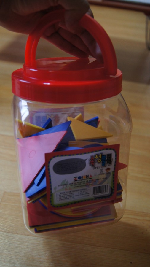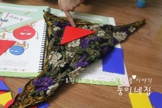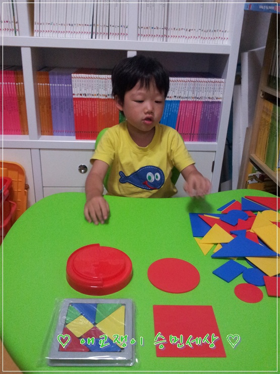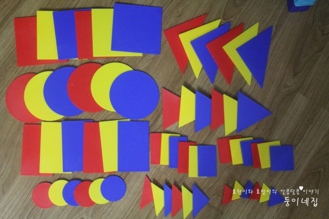 같은 도형을 크게, 작게.. 두꺼운 조각과 얇은 조각으로..구분해보고 같은 도형을 찾되 특정그림에 두꺼운 테두리안에는 두꺼운 조각을, 얇은 테두리안에는 얇은 도형을 찾게해줍니다. 특정색깔(예:노란조각)만을 이용해서 그림을 완성시켜주기도 하고, 그림과 같은 순서로 조각을 쌓아보이고 합니다. 일정한 규칙대로 조각을 찾아보기도 하고 재미있는 동화속나라에서 도형놀이도 합니다.