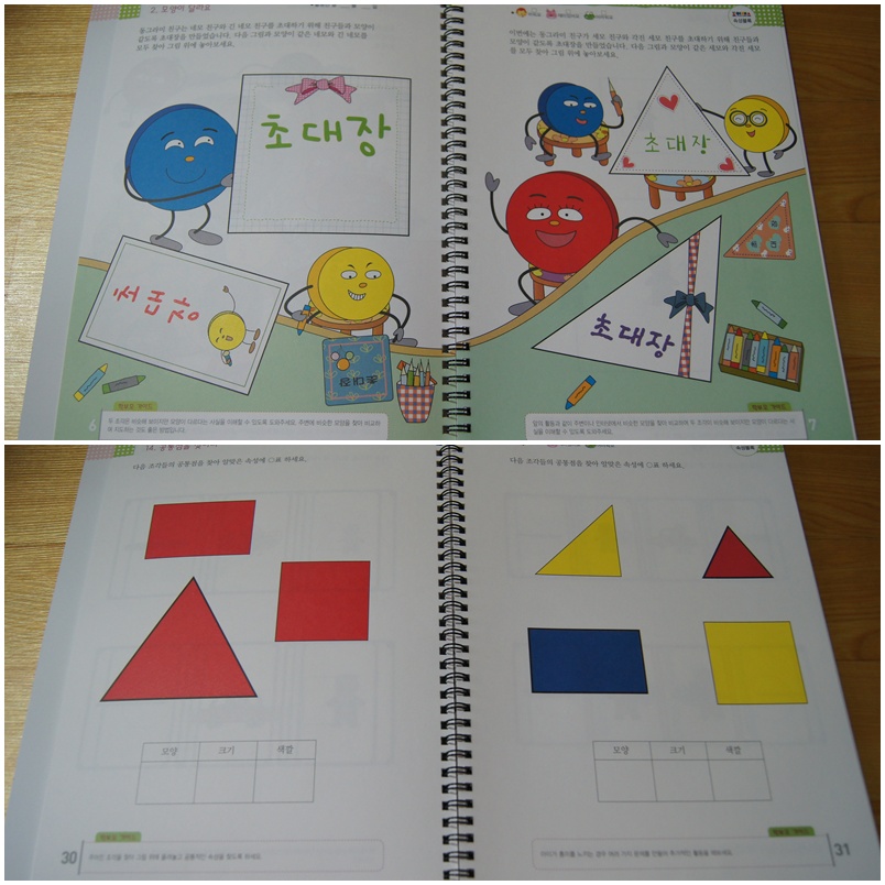 다른 교구들과 마찬가지고 워크북이 없는 교구는 단순한 놀잇감에 불과합니다. 수준별로 체계적으로 구성된 조이매스 워크북.. 교구와 워크북이 결합된 구성이 아주 흡족합니다. 단순한 놀잇감으로 사용되기보다는 좀 더 체계적으로 아이와 함께 소통하며 재미있게 공부할 수 있도록 활용할 수 있는 워크북이 들어있어 너무 반가웠습니다. 도형에 대한 공부는 과자를 먹을때도, 사물을 볼때도, 현재 공부하는 학습지에서도 자주 등장하는 이야기인데요.. 보통은 스티커를 붙이고 놀거나 스케치북에 그림을 그리면서 접하는 도형들.. 이제는 조이매스 속성블록과 함께.. 직접 손으로 만지고 직접 골라보고 워크북에 대보고, 관찰하고 이야기하고 표현해보면서.. 재미있게 도형 공부를 하는건 어떨까요?