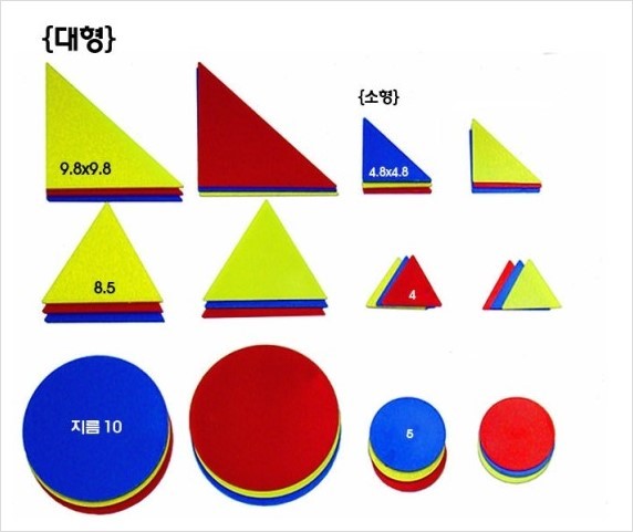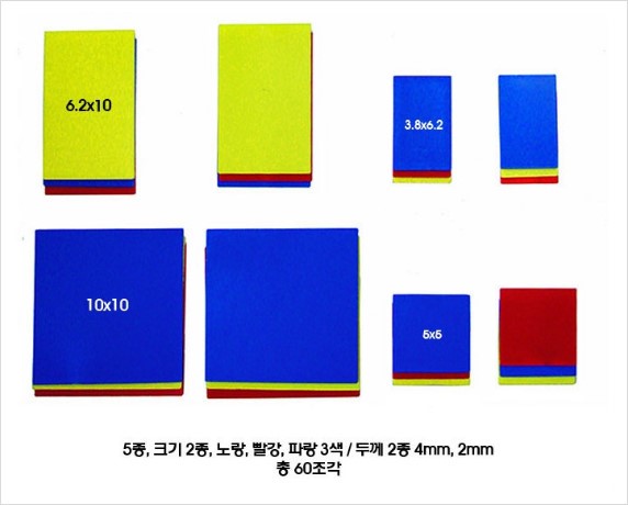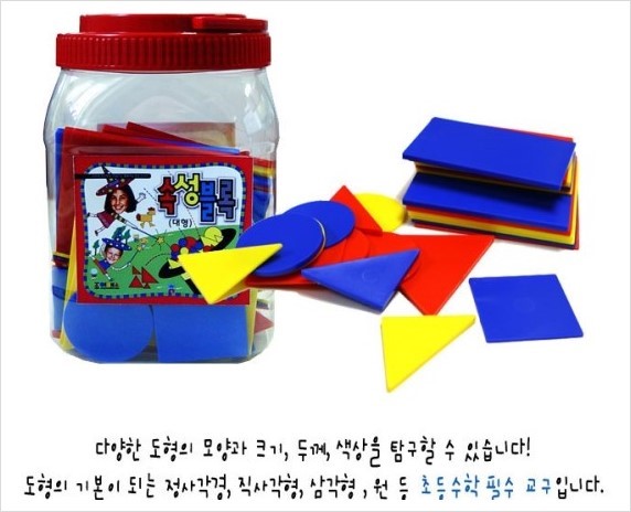 다양한 도형의 모양과 크기, 두께, 색상등을 탐구하고. 도형의 기본이 되는 정사각형, 직사각형, 삼각형, 원 등 초등수학 필수교구 조이매스 속성블럭