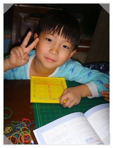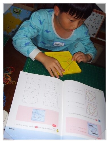 아이들은 역시 어른들과는 다른세계에~~ 조이매쓰 기하판을 보고는 재미없어 할꺼 같다? 라는 생각이었는데... 아이는 "너무너무 재밌다"며 혼자서 워크북 보고 만들곤 하네요.