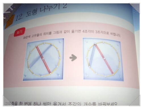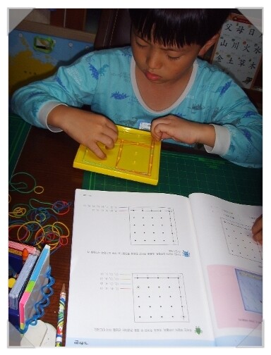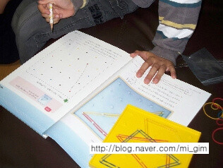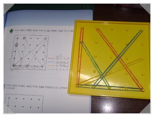 워크지에 나온 그림을 따라서 직접 고무줄을 끼워봅니다... 그럼 원하는 답을 쉽게 얻을 수 있지요