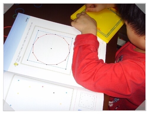 원형 기하판을 이용해서 큰아이와 함께 해봤답니다. 다양한 놀이가 함께 들어가져 있어서 아이에게도 생각을 하게 만드네요
