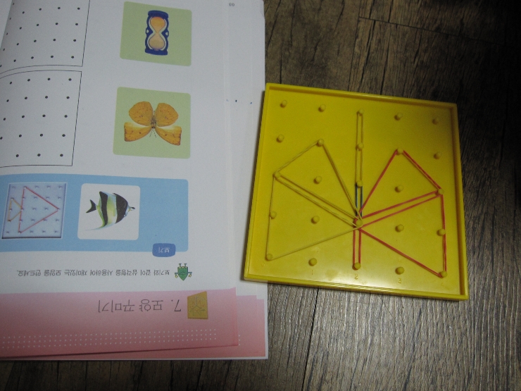 오늘 완성한 작품들... 오늘은 점선을 기준으로 대칭에 대해서 배웠구요. 하늘색 물고기와 분홍색 새를 표현하고 나머지를 다른 색으로 채우것, 그리고 영어 알파벳 T와 Z를 표현해 보았어요~ 특히 Z를 표현할 때에는 같은 모양이라도 여러가지 표현 방법이 있다는 것을 알려주었어요~ 가운데 점선을 기준으로 도형의 대칭을 알려주는 문제에서는 가운데 부분을 가로지르도록 조각을 놓아서는 안된는 건데 점선이 있어서 그런지 가르쳐 주지 않아도 알아서 그렇게 놓더라구요. '영어 알파벳 Z'를 표현하는 문제에서는 잘못된 것을 깨달았을 때는 가감하게 처음부터 다시 하는 울 딸의 모습도 볼 수 있었어요~ 이런 큐브놀이에서는 아이의 성격이 잘 드러나는 것 같아요...^^ 조이매스 <꼬마큐브> 셋째날...