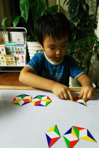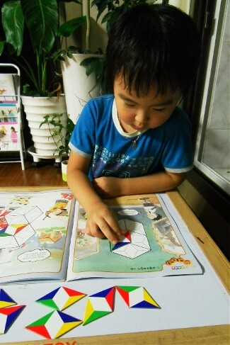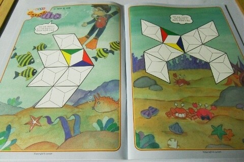 워크북 앞쪽의 평면도형만들기에서 충분히 큐브의 각 모양에 익숙해지고 큐브사용의 원리와 요령을 익힌 후에는