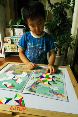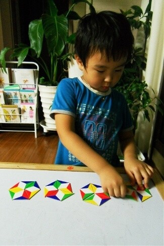 먼저 2개의 큐브로 문제를 풀어본지라 요령도 붙고 또 문제풀이의 성취감도 느꼈던터라, 3개의 모양큐브를 이용한 문제풀이도 굉장히 재미있어하면서 높은 집중력을 보이더라구요.