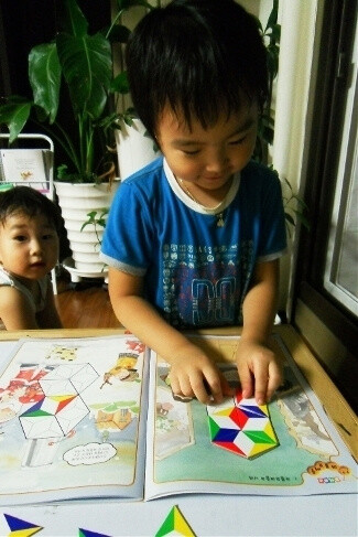 어려운 입체만들기도 첫문제는 잘 풀어내서 의기양양해 했는데 두번째 문제는 조금 어려웠는지 머리를 긁적긁적하더라구요.ㅎㅎ