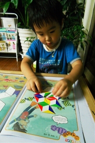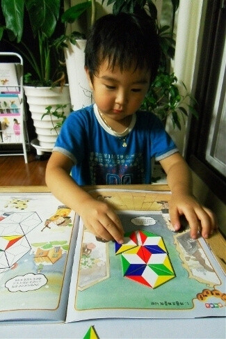 정말 간단한 문제는 순식간에 풀어내고, 조금 어렵다 싶은 문제는 엄마의 도움을 받아 한참동안 이것 저것 다양한 큐브를