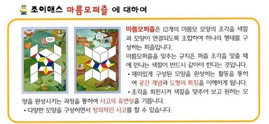 교구를 활용하여 여러가지 모양을 만들어보도록 설명하고 있는데 크게 평면만들기와 입체만들기의 두 파트로 구성되어 있다죠.