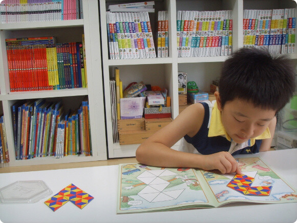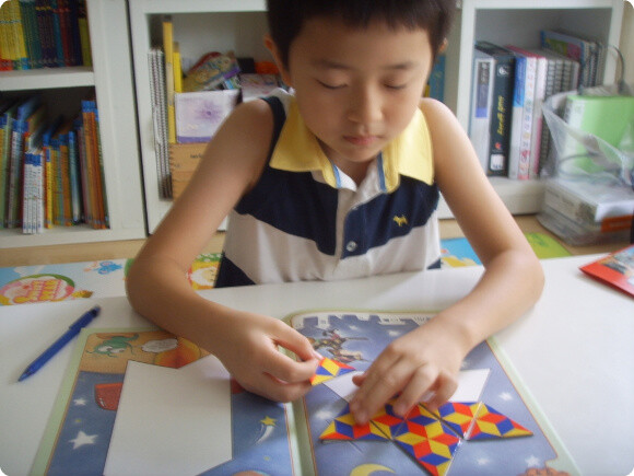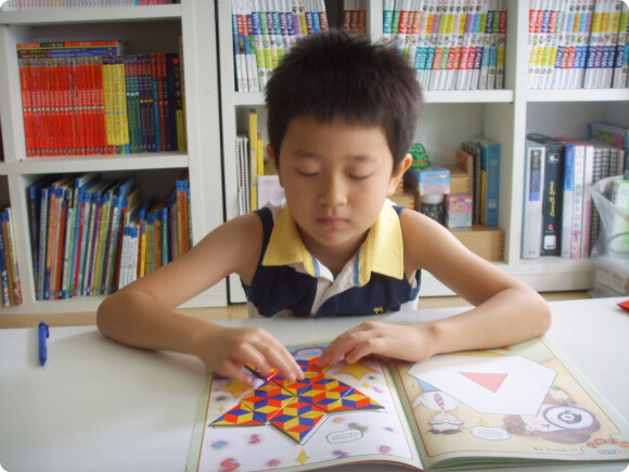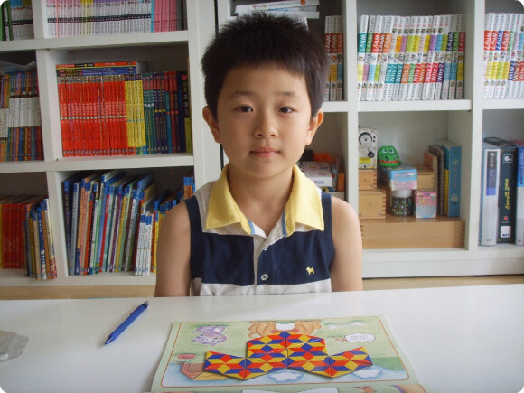 휴가 다녀온후. 어느새 구리빛도는 소년으로 부쩍 커버린 녀석. 방학동안 삼각퍼즐로 수학적인 개념이 쑥쑥 키워질듯 하네요.
