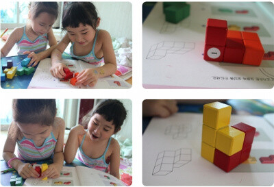 역시나 엄마의 생각대로 효원이와 효민이에게 소마큐브는 쉽지는 않치만 어렵지도 않는 재밌는 교구로 생각되는 것 같아요.