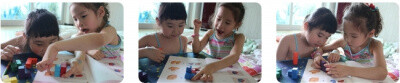 꺼내서 주사위와 스티커를 보더니 재미있어하네요. 논다는 개념으로 접근하니 어려워하지 않는 것 같아요.