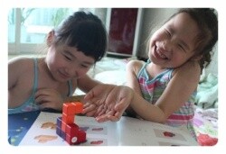 효원이와 효민이는 어린이날 창의력교실에서 조이매스 소마큐브를 처음 만나봤어요.