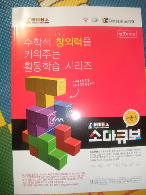 『조이매스』에서 나온 《소마큐브》는 교재와 교구로 되어 있습니다. 소마큐브는 7개의 입체 조각 일부 또는 전부를 사용해 제시도니 그림이나 원하는 모양을 만드는 활동을 통해, 수학 학습의 흥미를 유발시키고 수학적 추론 능력과 공간지각력을 키우는 데 도움을 줍니다.