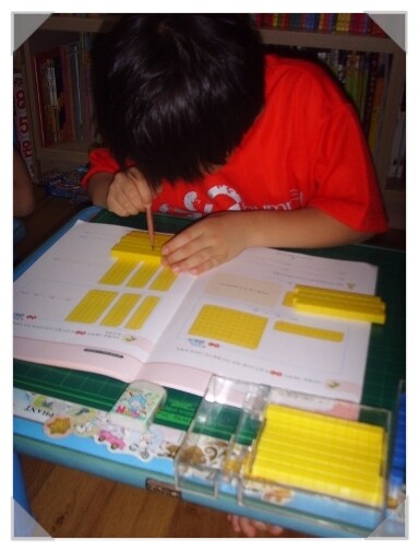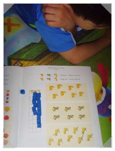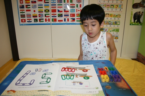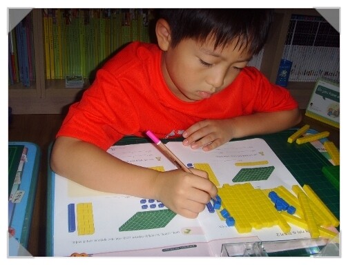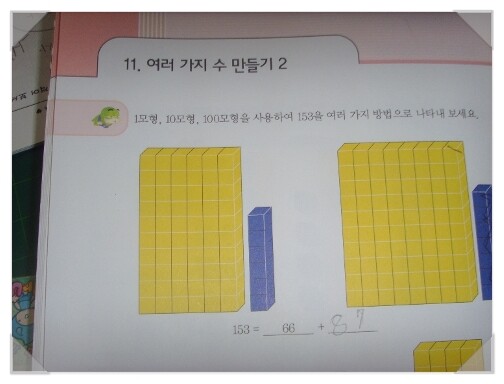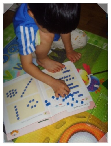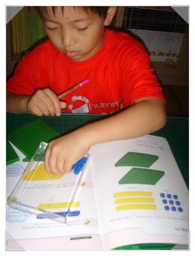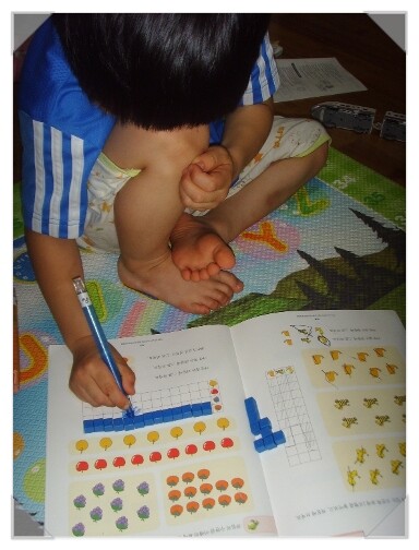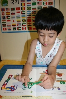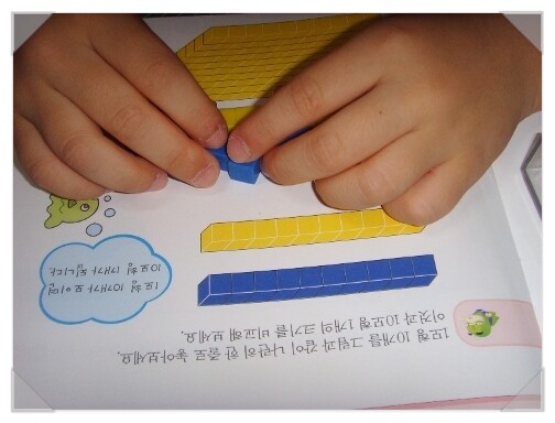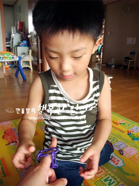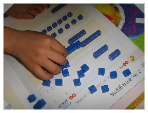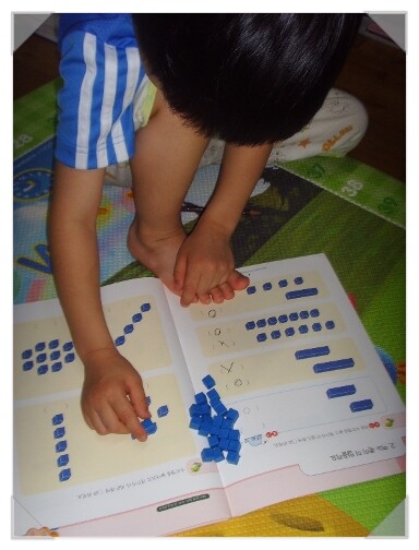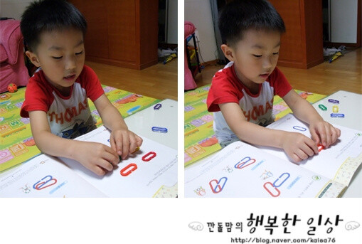 스스로 워크북 속 그림과 똑같은 모양으로 고리고리를 늘어놓으며 대입의 즐거움을 느끼는 중이신 깐돌군..ㅋㅋ
