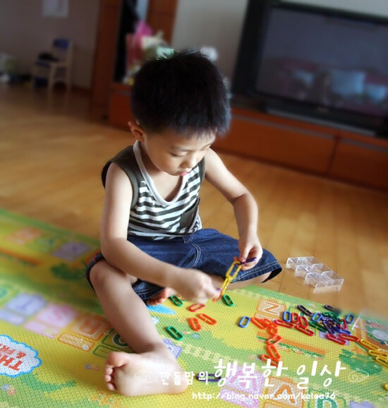 아이와 너무너무 즐겁게 활용한 고리고리였어요. 오늘은 고리고리 워크북 맨 처음에 있는 모양만들기만 소개했지만 워크북 뒤쪽으로는 수만들기, 덧셈익히기, 짝짓기, 규칙찾기 등 고리고리의 무궁무진한 활용법을 통해 수학개념을 익히는 다양하고 재미있는 예제들이 소개되어 있답니다. 아이와 교구를 활용하면서 아이도 교구를 통해 여러가지를 익히고 배우지만, 함께하는 엄마인 저도 아이에 대한 지도자세나 교육태도를 많이 배우는 것 같아요. 이번 짧은 고리고리 활용을 통해서도 두 가지를 배웠네요. 1. 아이가 상상할 수 있는 기회를 주자 2. 아이가 스스로 결정할때까지 충분히 기다려 주자 아.. 앞으로는 정말 아이를 지도하거나 같이 놀아 줄때 이 두가지에 유념하여 아이를 대하자고 다짐해봅니다. 아이와 함께 고리고리의 활용을 통해 아이뿐만 아니라 엄마도 아이에 대한 교육태도를 하나하나 배워가는 느낌이라 이번 고리고리와 함께 한 시간이 더욱 더 소중했던 것 같아요. |