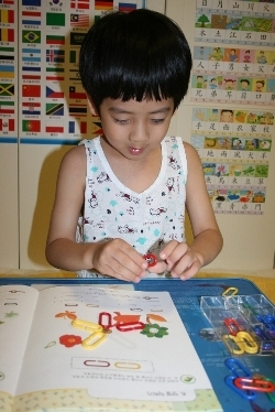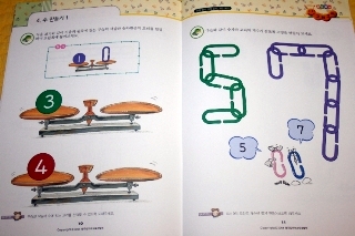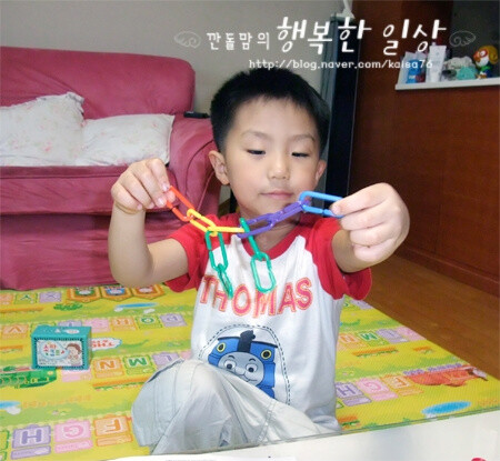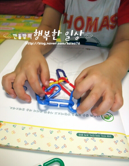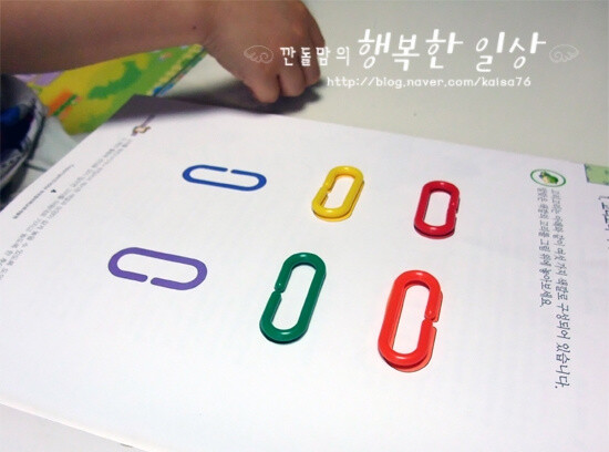 두둥~!! 고리고리와 함께 들어있는 수준 2 워크북입니다. 수준1도 안했는데 난데없이 수준2라서 좀 힘들지 않을까 싶었는데 6살배기 울 깐돌군에게는 딱 알맞은 난이도였던것 같아요 워낙 각종 설명서(?)에 익숙한 깐돌군이라 그런지 책만 봐도 척척~! "엄마 이것봐요, 이렇게 하는 거에요!"이러면서 되려 엄마에게 설명을 해줍니다. ㅎㅎ 무지개빛 깜찍하고 예쁜 교구인 고리고리.. 막상 받고보면 깜찍하긴하지만 길게 연결하는 것 외어 어떤 활용이 가능할까 궁금해지기도 하는데 조이매스에서 제공하고 있는 각각의 수준별 워크북을 통해 다양한 활용법을 소개하고 있어 엄마의 이런 고민을 해결해 주고 있답니다. 워크북 속 활용대로 여러가지 모양을 늘어놔 보고 만들어보고, 또 연결해 보면서 수개념및 규칙의 개념, 패턴,등 수학적 개념의 기초를 다지고 문제해결력을 기르는 것은 물론, 고리로 만든 모양을 가지고 상상하고 이미지를 떠올려보면서 창의력, 상상력과 함께 미적감각까지 두루두루 향상시킬 수 있는것 같아요. 엄마의 도움을 받지않고 아이스스로 고리를 연결하고 끼우고 하면서 아이의 손과 눈의 협응력, 소근육의 발달을 도와 운동성 향상에도 도움을 주고 또 워크북에서 소개하는 문제들을 하나하나 스스로 풀어보면서 아이가 성취감도 맛볼 수 있구요. 이제 깐돌군과 함께했던 워크북을 이용한 활용을 짧게나나 소개할게요. (워크북.. 어떤 내용일까 궁금하시죠?? ^^)
