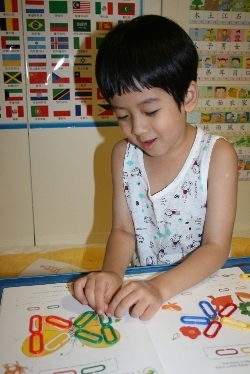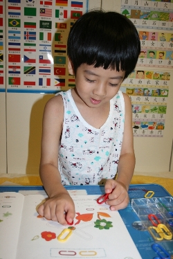 말 만들었다며 따그닥따그닥 한 번 신나게 달려주십니다. ㅋㅋ 이번에는 다음 페이지에 나와있는 사람모양을 만들어 줄거에요. 좌우가 대칭인 사람모양을 아이스스로 자유롭게 만들어도 보고 또 엄마의 지도하에 색이 좌우 대칭이 되도록 만들어도 보면서 대칭의 개념도 자연스럽게 익힐 수 있도록 마련된 문제인데, 울 깐돌군은 처음 자유만들기부터 나름의 원칙과 대칭(?엄연히 말하면 대칭은 아니지만 아예 대칭이 아니라고도 말할 수 없는..ㅋ)을 이용하여 사람모양을 만들어 내더라구요.