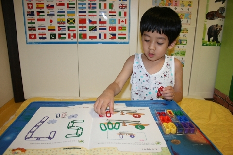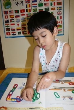 오오~ 제법빠른 속도로 정확하게 연결하더라구요~ 눈 깜짝할 사이에 완성!! 얼핏보기에는 어려워보이는 예제였는데 아이가 곧잘 해 내는 모습을 보고는 뿌듯합니다. 아이도 아무의 도움 없이 스스로 해냈다는 사실에 무척 기뻐하며 자랑하듯 "엄마 말 이야~!! 잘 만들었죠?"이러면서 들어올리더라구요^^