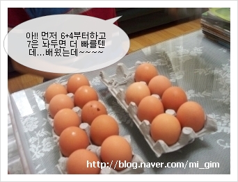 얼마전 개념씨 수학나무 공부하면서 배운 10만들기에서는 계란판을 이용했는데... 수모형이 있었으면 계란 몇알 깨지 않고 더