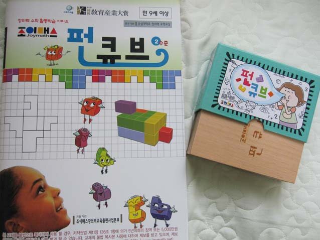 엄마들 사이에서 조이매스 교구가 좋다고 입소문이 많이 났더군요. 종류도 다양하고 그 중에는 우리 큰아이나 작은아이가 해보면 좋을듯한 탐나는 교구가 여럿 있더라구요.^^ 그 중에 펀큐브라는 것을 가지고 놀아 보았습니다. 수학을 공부라고 생각하면 지겹고 재미없지만, 놀이라고 생각하면 재미나잖아요. 교구만 있으면 어찌 해야할까 고민되겠지만 교재가 함께 있으니 여러가지로 활용해보면 재미날듯 싶습니다.