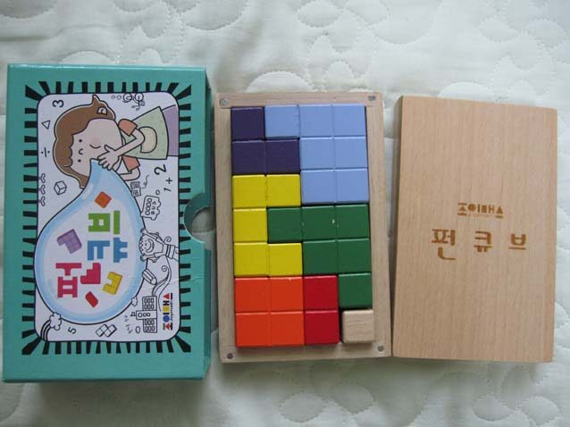 이 퍼즐의 가장 큰 특징은 여러 가지 형태의 입체도형을 만들 수 있을 뿐만 아니라 평면 채우기도 가능하다는것입니다. 아이들이 다양한 기하학적 도형을 이해하고, 산만한 정서를 차분하게 하며 집중할 수 있게 도와주어서 너무 좋더라구요. 현정이도 이 펀큐브를 할때 집중하고 생각하면서 모양을 맞추어 나가는 모습을 보니깐 너무 좋더라구요. 수학적 능력과 사고력을 키워주는데 정말 도움이 되겠더라구요. |