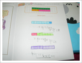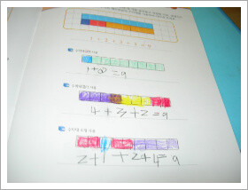 아들은 파란색,엄마는 빨간색~!! 게임형식으로 진행을 했어요