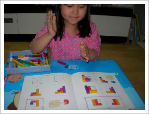 같은 모양을 다른 조각으로 똑같이 만들어보고 몇조각이 들어갔는지 세어보고 문제해결력까지..