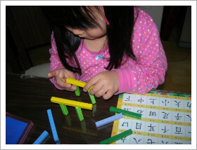 아들이 한번 조각을 놓으면 그다음 엄마가 놓구 번갈아가면서 조각을 이용해서 일곱조각으로 한글을 맞추는거죠