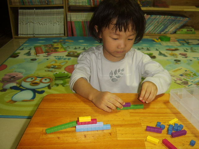 조이매스 꼬마 큐브 수준 3도 드디어 저희 집에 입성했습니다. 조이매스 꼬마 큐브는 수준이1~3까지 있답니다. 같은 교구로 교재만 따로 구입해서 할 수 있으니, 실속있어요. 큐브는 2~3조각으로 된 큐브 6개가 한 세트로, 전체 2세트로 구성되어 있어요. 교재의 수준 1은 4세부터 할 수 있고, 수준 3의 적정 연령은 만 8세이상인데, 5세인 소민이 수준에도 괜찮은 것 같아요. 물론 내용중 일부(값을 따지는 것)은 초등학년이 되어야 할 것 같은 내용도 있지만, 그것 조차도 참 재미있어 하네요. 엄마와 함께 하면 아이는 더욱 좋아하는 것 같아요.