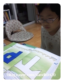 소마큐브를 사달라고 성화인 8살 딸아이때문에 알게된 조이매스의 소마큐브입니다. 받자마자 열공모드로 들어가는 딸아이를 보며 교재가 궁금하여 천천히 훑어보게 되었습니다. 책 표지에 씌여있는 그대로 '수학적 창의력을 키워주는 활동학습 시리즈' 입니다. 수준1은 만 7세 이상 이용하라고 되어 있지만 3살난 아들녀석도 큐브로 침대도 만들고 의자도 만들고 장난감 마냥 잘 가지고 논답니다. 물론 교구 정리까지는 힘들겠지만 이렇게 가지고 노는것도 좋을것 같아요~ 소마큐브는 정육면체를 서로 다른 7개의 조각으로 분해한 것으로 다양한 기하학적 도형을 이해하고,다양한 활동을 통해서 집중력을 키우는데 좋은것 같습니다. 아마 교구만 있었다면 제대로된 활용을 못했을거에요.. 수준1 워크북 덕분에 보다 다양한 활동으로 아이의 창의력을 끄집어 낼수 있었거든요~ 처음부터 했지만 도중에 자기가 하고 싶은것이 있으면 건너뛰어 하기도 했습니다. 각 모양에 맞게 조각의 이름(숫자)이 적힌 스티커를 붙히고 워크북에 있는 도형을 만들어보면서 어떤 모양이 사용되어졌는지 알아보았습니다. 단순한듯 보이는 문제였지만 도형을 맞추고 색칠하는 과정이 아이의 집중력을 요하는것이어서 문제푸는 내내 침묵으로 고요했는데 열심히 하는 모습이 좋더라구요~ 여러 모양들을 보고 따라서 만들어본 다음 위,앞,옆에서 본 모양을 색칠해보는것 또한 초등학교 들어가면 도형편에서 하는 것이어서 많은 도움이 될 듯 싶었습니다. 큰아이가 초등학교 들어가서 처음으로 힘들어했던 문제가 도형 부분이었습니다. 숨어있는 도형 찾기라든지, 앞,뒷,옆에서 본 모양을 그리는것을 조금 어려워했는데 이 소마큐브를 미리 만나보았더라면 그리 어려워하지 않았을텐데..하는 아쉬움이 들었습니다. 뒷부분으로 갈수록 문제가 조금씩 어려워졌지만 차근차근 풀면서 성취감도 느끼고 자기 나름대로 여러 모양들을 만들어보면서 즐겁게 활용하는 모습을 보면서 정말 알찬 교재라는 생각이 들었습니다. 딸아이의 큐브사랑은 끊임이 없어서 여행갈때도 꼭 챙겨가고 친구가 놀러오면 큐브와 함께 가지고 놀면서 급기야는 딸아이 친구 엄마가 하나 사달라고 부탁까지 하셨답니다. 아이들이 큐브를 가지고 활동하는 사진도 함께 올려봅니다. 딸아인 큐브를 원래 모양인 정육면체로 만드는 것을 재미있어했습니다. 다른 방법으로도 맞춰보고 하면서 애쓰는 모습이 대견하기까지 했네요~ 수준1을 마치면 윗단계의 워크북을 사서 꾸준히 해주고 싶네요~ 알찬 교구와 교재로 정말 즐거웠습니다~^^*