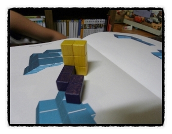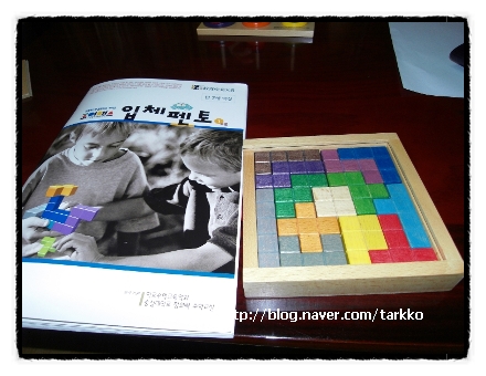 우리 집에도 평면 펜토미노 교재가 있는데 그다지 재미있어하지는 않더라구요. 도형은 평면과 입체 두 가지 다 접해보는 게 좋을 것 같아요. 입체 펜토미노가 아무래도 더 공간 지각력에 대한 이해가 더 높지 않나 싶어요.