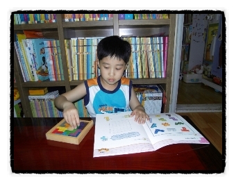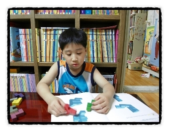 이건 여섯조각으로 모양만들기인데... 겨냥도를 보고 바로 만들수 있어서 얼마나 기뻐하던지 ㅎㅎ