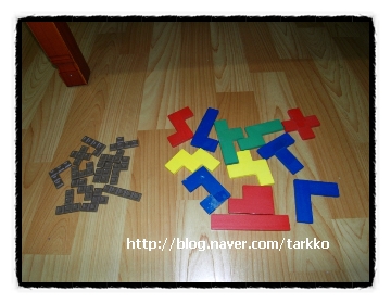 펜토미노는 5개의 정사각형을 연결 하여 12가지의 모양을 만들어 다양한 모양을 만들어 내고 도형 돌리기 뒤집기..회전 하기등 수학교구로 사용 되고 있지요... 일단 저희집에 있는 펜토미노 입니다..
