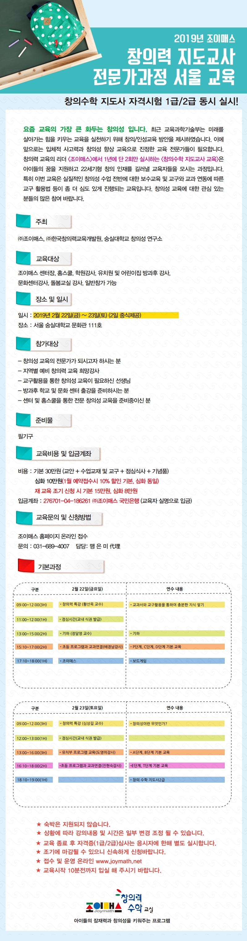 (기본) 2019년 2월 서울 창의력 전문가 과정 교육 - 숭실대(2.23~2.24)