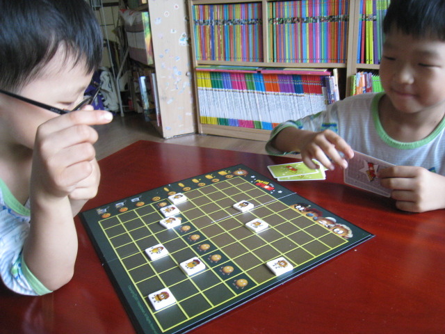 보드게임이 가장 좋다는 소민이... 그간 많은 보드게임을 해 왔습니다. 그런데 점점 복잡한 게임보다는 준비과정이 간단한 게임이 아이랑 하게 되더라구요. 간단하면서도 재미있고, 그리고 여러 번 할 수 있는 게임이 아이들과 시간 보내기엔 최고인 것 같아요. 포테스타가 그런 게임에요. 가운데 0에 9개의 캐릭터를 쭉 놓고, 나오는 날씨 카드에 따라 숫자 만큼 위로 가고, 아래로 움직이니 게임 방법 참 간단합니다. ^^ 때론 30~ 1시간 30분 되는 게임도 하지만, 아직 어린 6살 소안이는 그 시간을 기다리기는 넘 버거워하니. 온 가족이 하기엔 포테스타처럼 준비과정이 간단하면서도 게임시간이 길지 않고, 도중에는 누가 이겼는지 모르기에 흥미가 떨어지지 않고, 막판에 점수계산을 해봐야 결과를 알 수 있는 이런 게임이 흥미진진한 게임이 좋답니다.