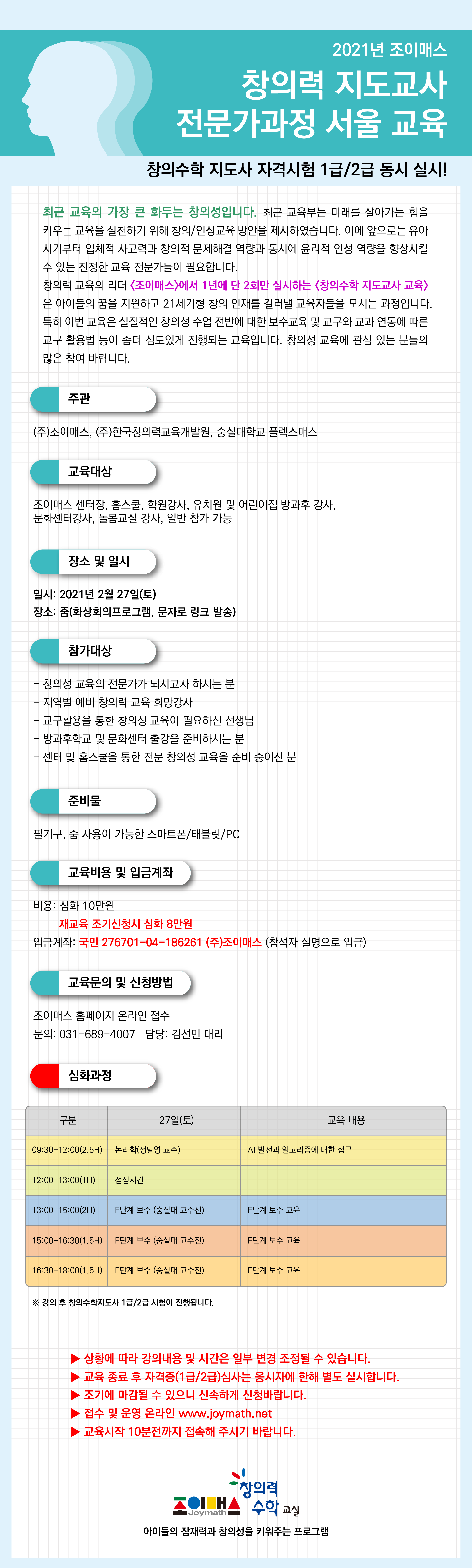 (기본) 2021년 2월 서울 창의력 전문가 과정 교육 - 숭실대(2.26~2.27)